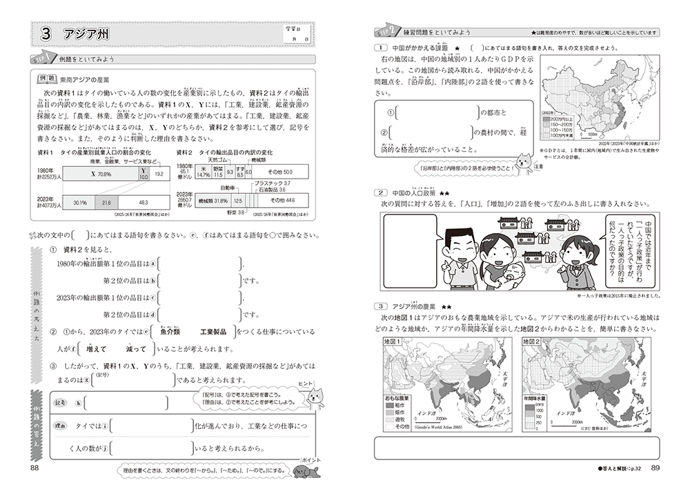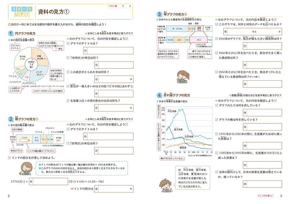 • 特集ページ②「資料の活用」:近年の入試問題の出題傾向にある「資料活用問題」について、資料の読み取り方や考え方などを丁寧に確認できるページです。